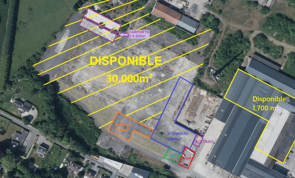 30000 m2Dalle de béton de 30.000 m², située derrière le Mokko Padel club, dont 600 m² couverts pour stockage extérieur de conteneurs, matériel ou matériaux.