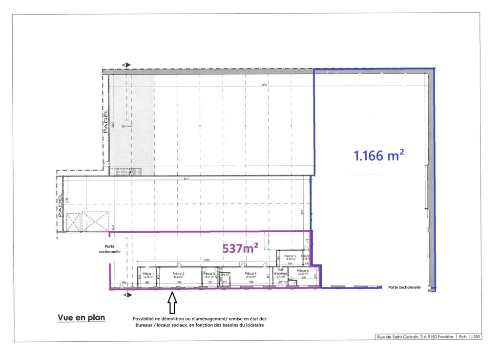 Des aménagements sur mesure, en fonction des besoins/ demandes des locataires (Bureaux, sanitaires,…) sont possibles en cas de location de longue durée.